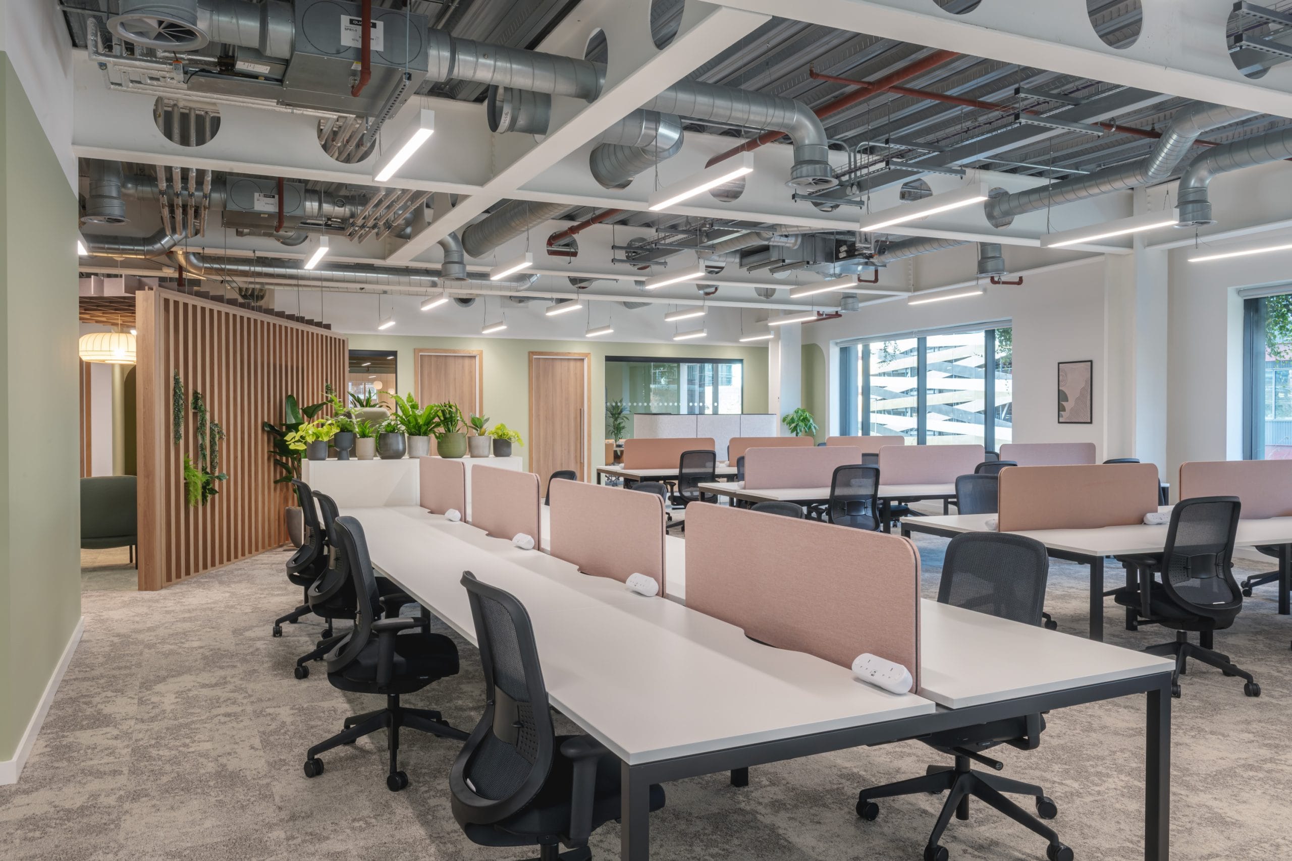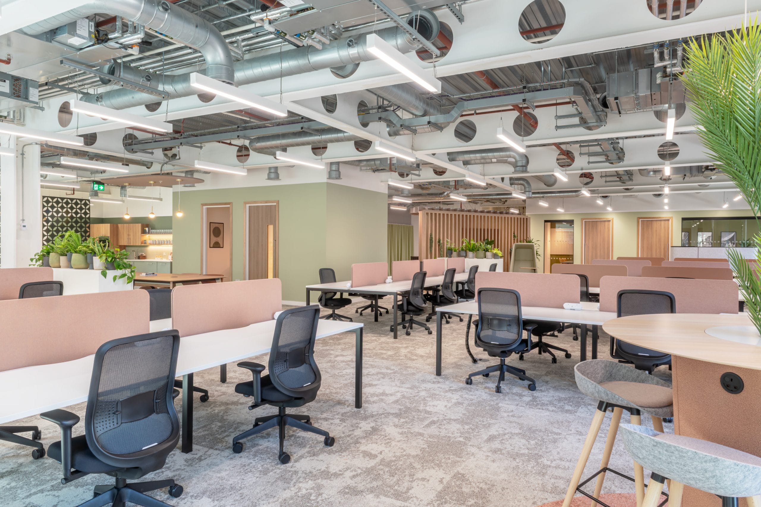 Set in Manchester’s most sustainable office building, the fitted and furnished office space comes complete with 50 fixed work stations, boardroom and additional meeting rooms, kitchen and dining space, pods and booths for focused working, and touchdown workspaces crafted for collaboration.